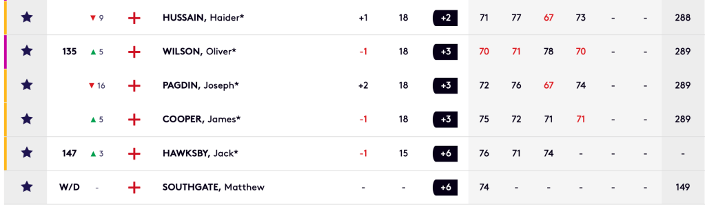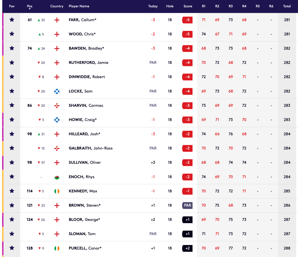 Final Stage Leaderboard – GB&I Players Who Missed The Cut (Graphic: DP World Tour)