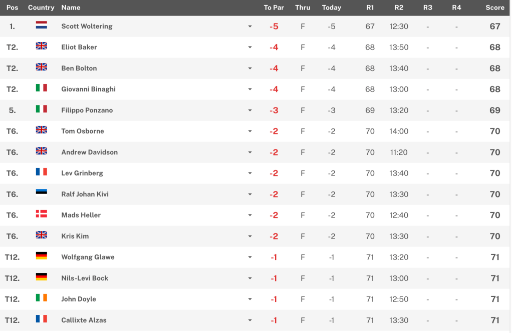 Scott WOLTERING‘s (NED) 5-under 67 was the best round of the day.