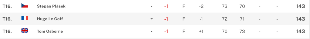 Caolan BURFORD (WAL) -5 is tied 5th and Tomi BOWEN (WAL), Andrew DAVIDSON (SCO) & Kris KIM (ENG)  -2 are all tied 11th.
