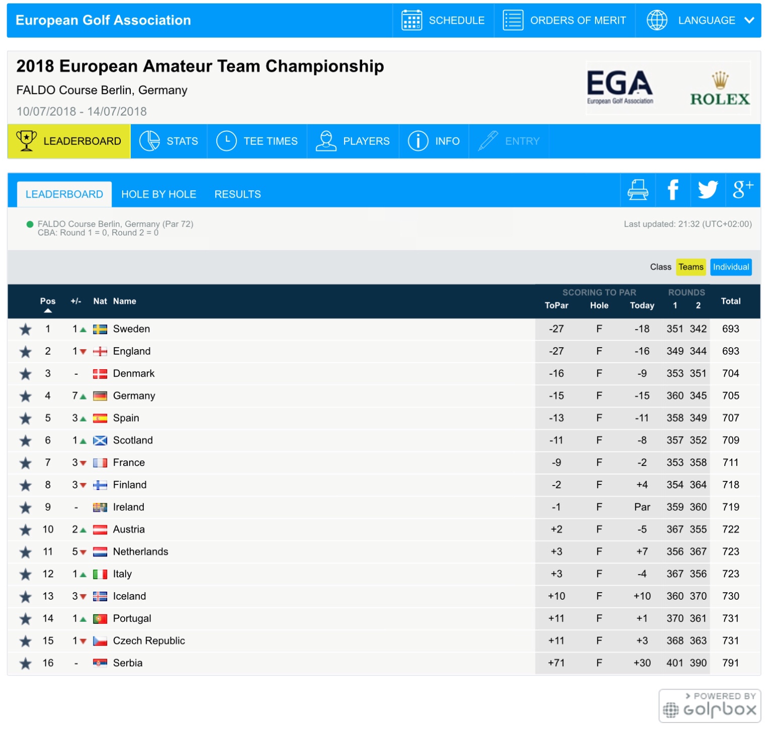 Team Stroke Play Qualifying Results (Graphic: EGA / Golfbox)