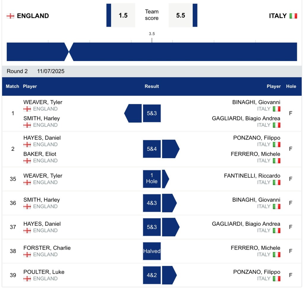 England v. Italy Flight A Semi-Final Results (Graphic: EGA / Golfbox)