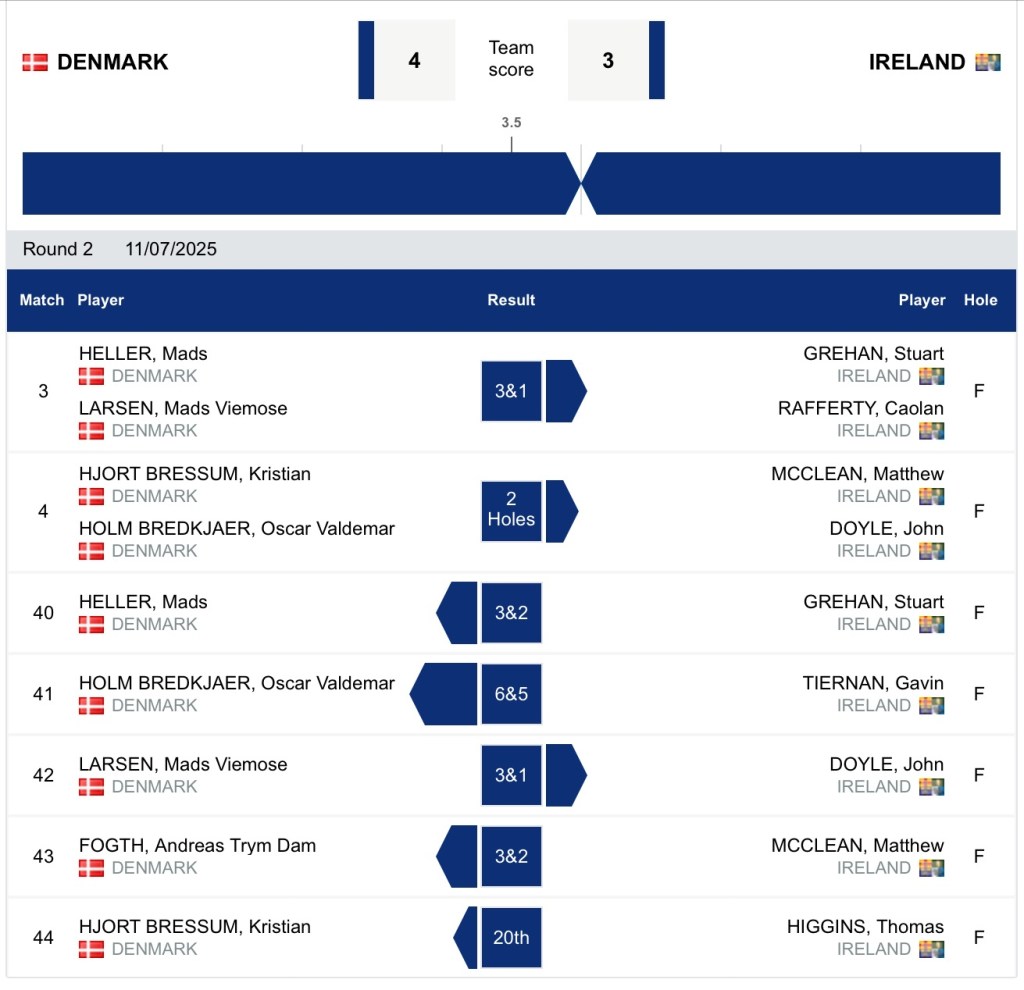 Denmark v. Ireland Flight A Semi-Final Results (Graphic: EGA / Golfbox)