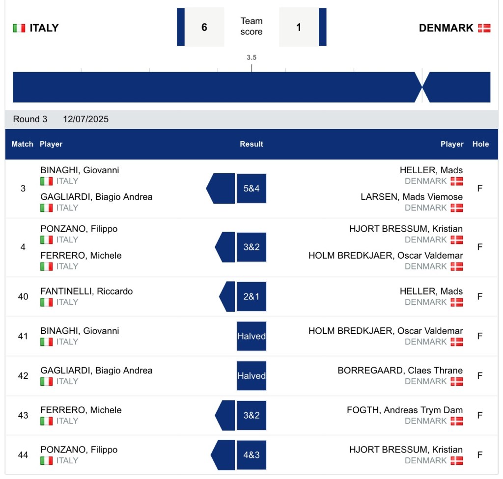 Italy v. Denmark Flight A Final Results (Graphic: EGA / Golfbox)