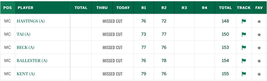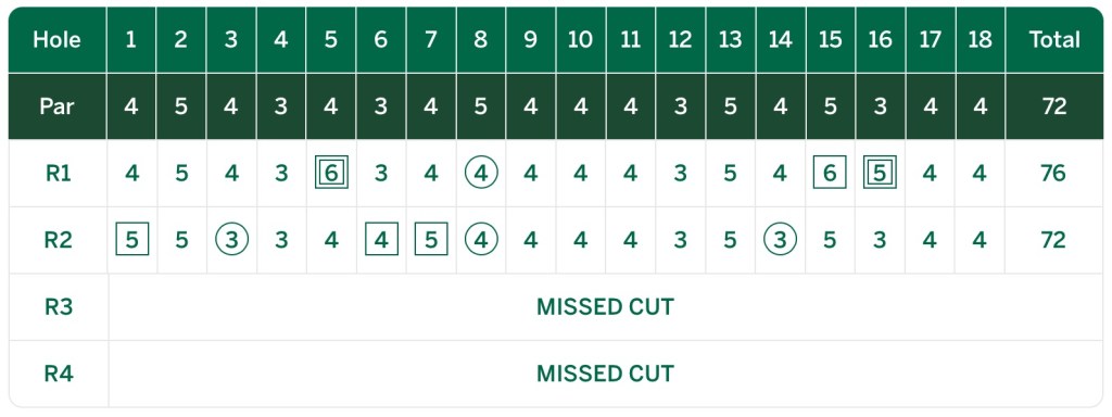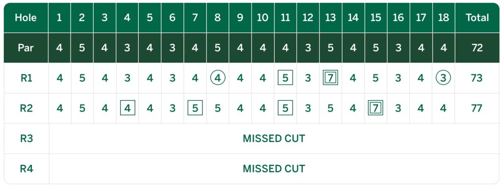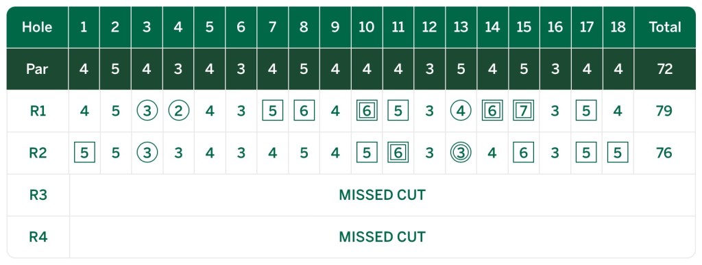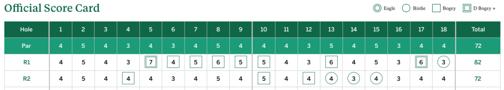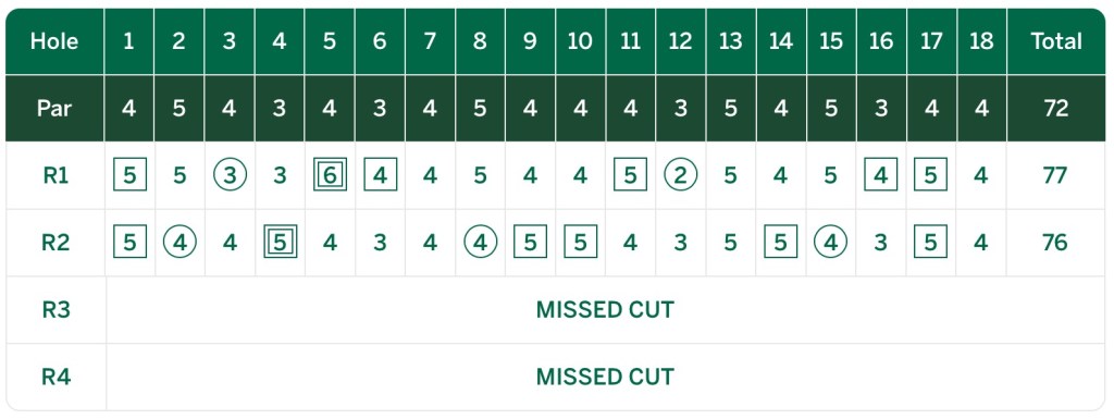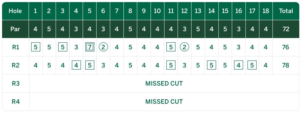 Noah Beck Scorecard – 155 +11 Tied 93rd (Graphic: The Masters)