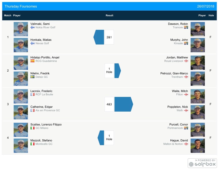 Day 1 Foursomes Results (Graphic: EGA / Golfbox)