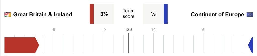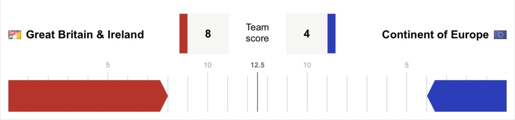 As the holders Continent of Europe can retain the Trophy by reaching 12.5 points.