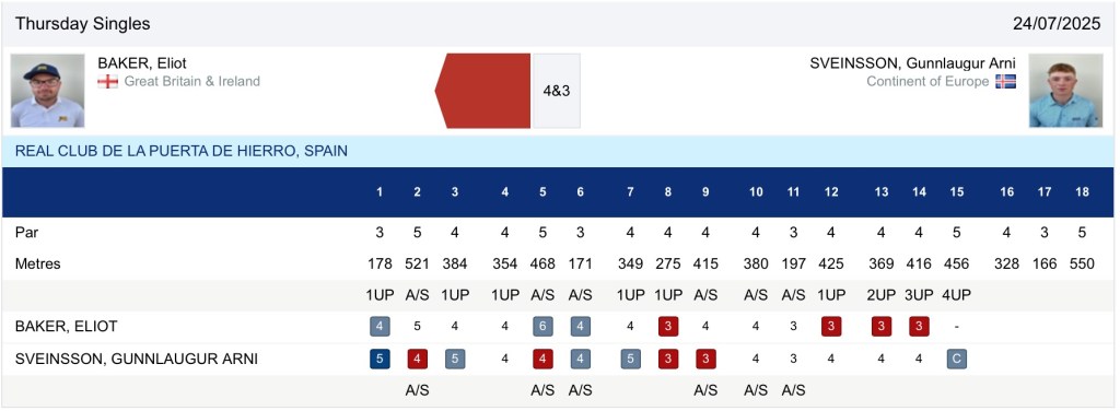 Baker v. Sveinsson Scoreboard (Graphic: EGA / Golfbox)