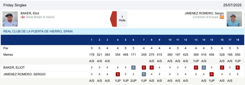 Baker v. Jimenez Romero Scoreboard (Graphic: EGA / Golfbox)