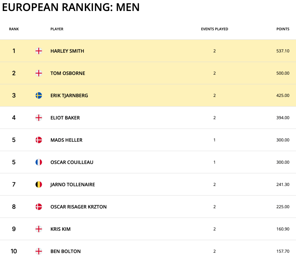 Click here to view the – Latest 2026 European Amateur Order of Merit