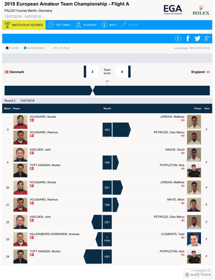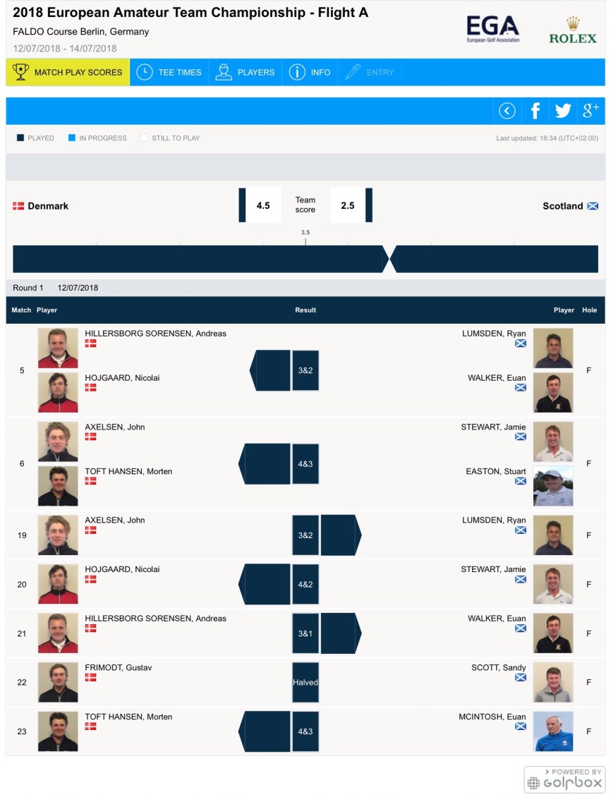 Scotland v. Denmark Quarter Final Results (Graphic: EGA / Golfbox)