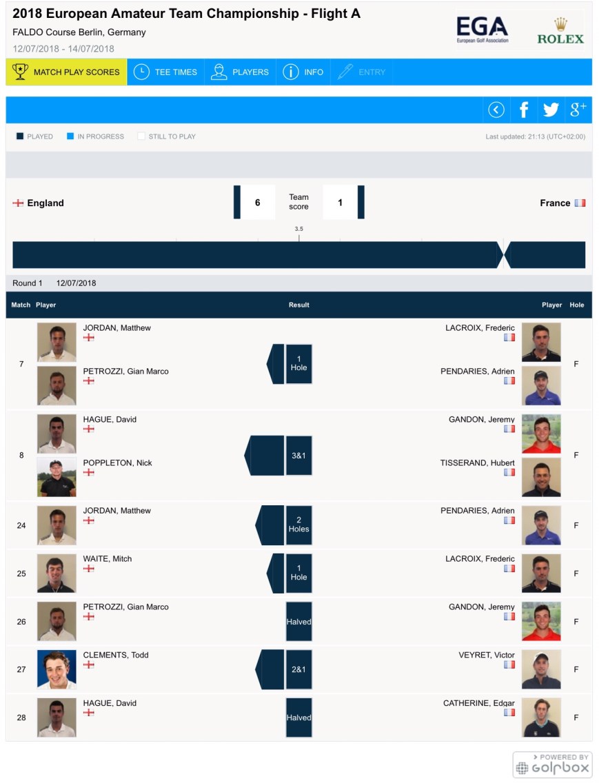 Click here to view the Match Play Draw / Scores – Flight A (featuring England)