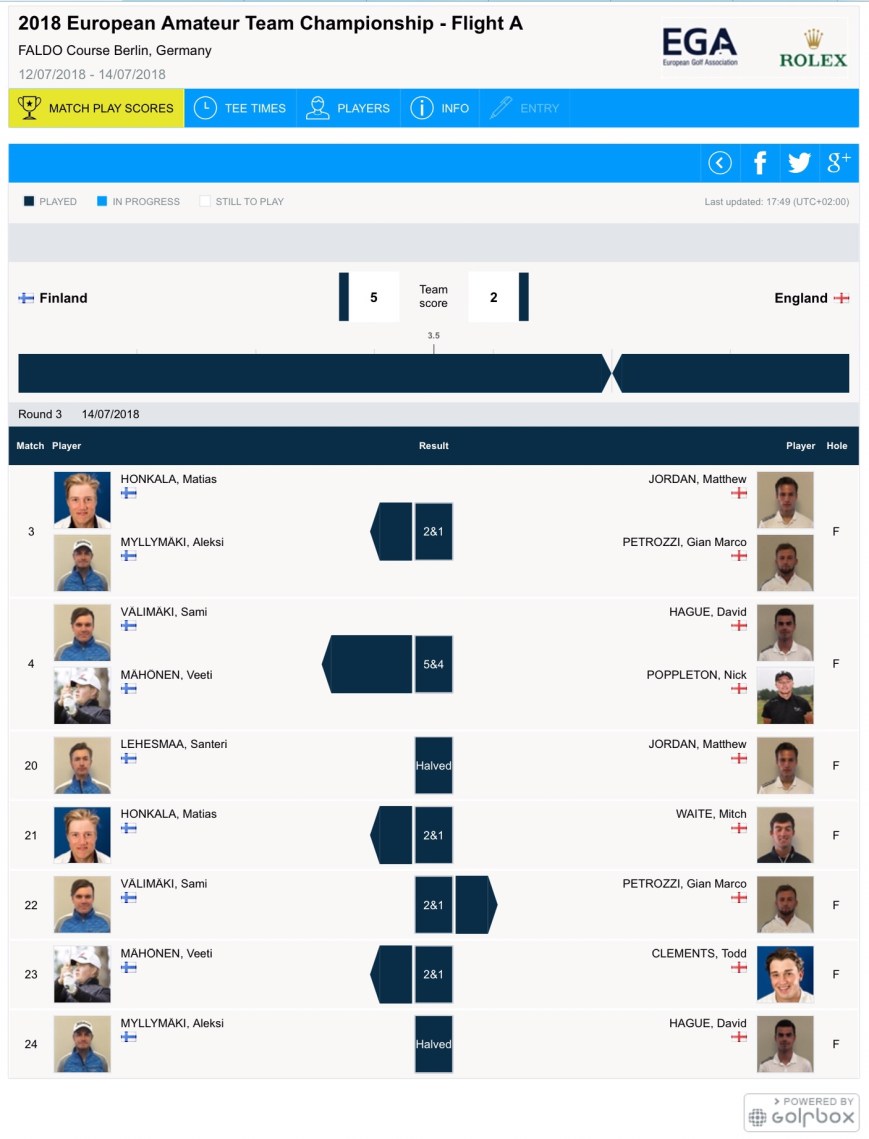 England v. Spain MP Day 3 Match Results (Graphic: EGA / Golfbox)