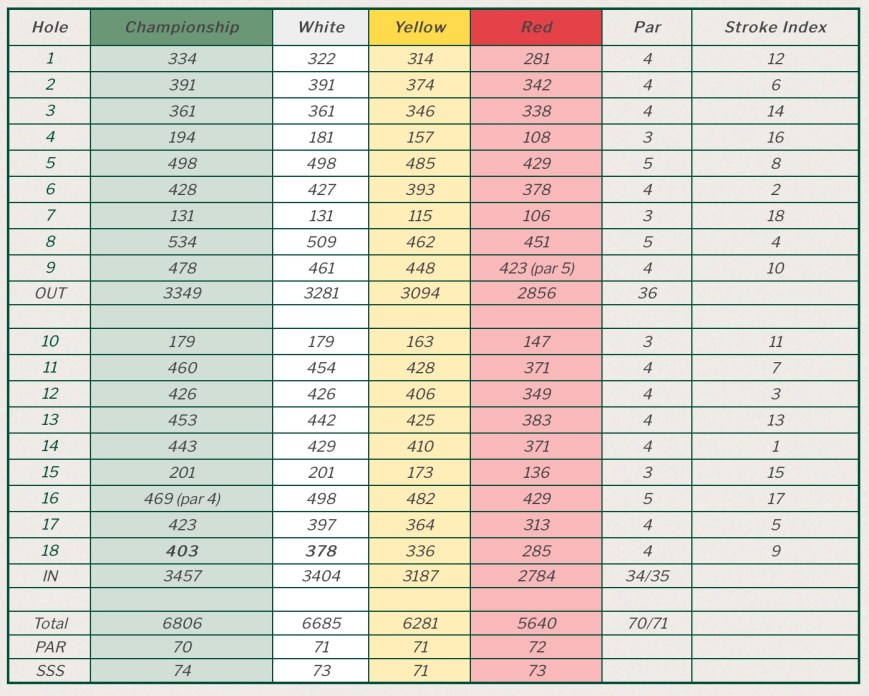 It sits 685m above sea level and plays to 6,563m and a par of 71 off the back tees.