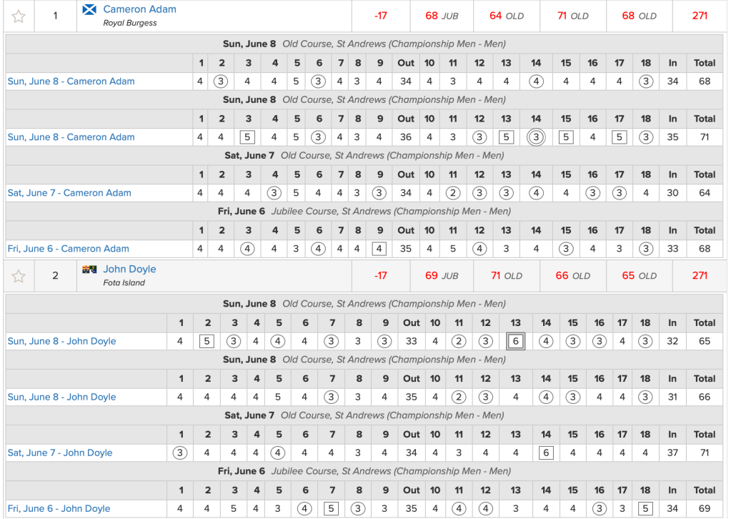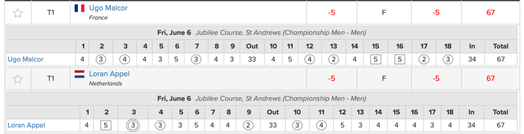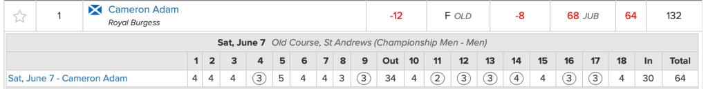 James ASHFIELD (WAL) and Calum SCOTT (SCO) both qualified in tied 32nd place with 141 (-1) scores. As the USGA adopts a blind draw to resolve ties they were eventually seeded 15 places apart.