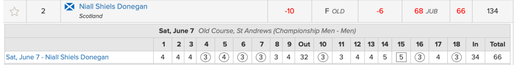 Shiels Donegan said afterwards “I think that playoff this morning really helped me. It got me into the competitive mindset super early on, gave me a good prep. It’s amazing. I’m originally from Scotland but I’ve grown up for the past 17 years in Mill Valley which is like 30 minutes away. A bunch of friends and family from the local muni club have been getting me fired up.”
