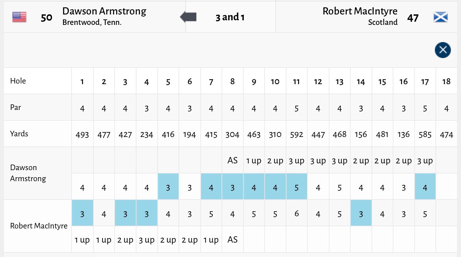 Defending champions USA (+6), tied 32nd, got off to a disappointing start which may prove to be unsurmountable even with their elite team. All three of their players posted scores of 75 (+3).